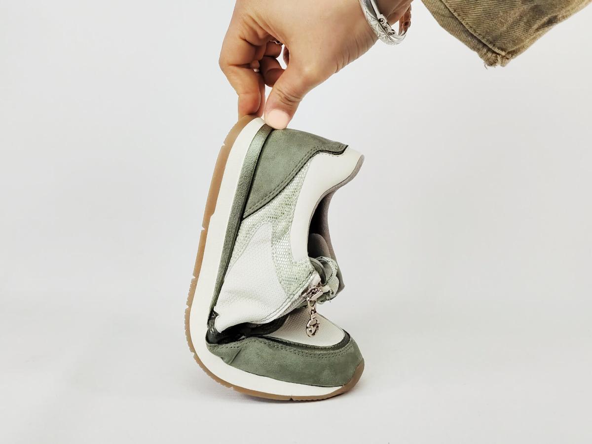 Basket vegane femme TAMARIS 23613 vert sage à pas cher, très facile à enfiler avec zip et lacets.