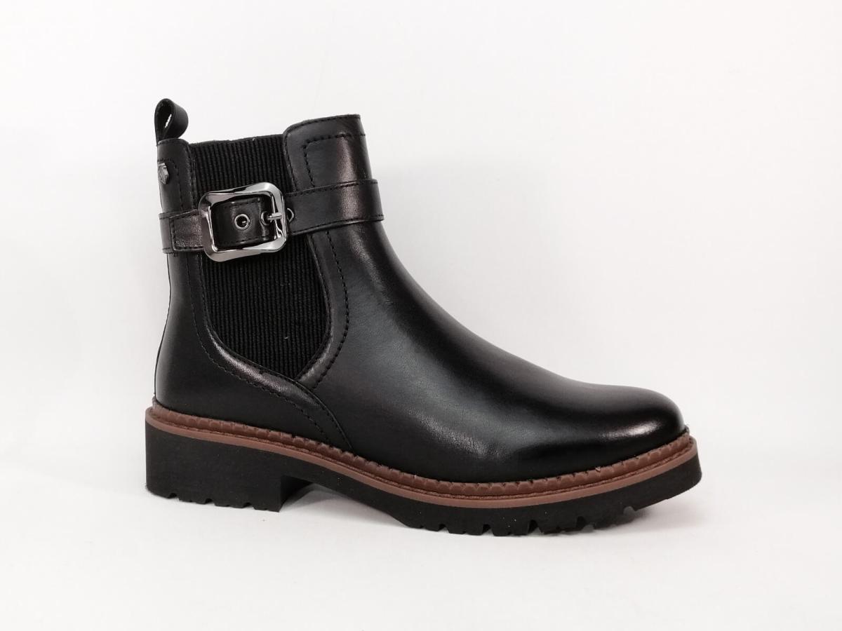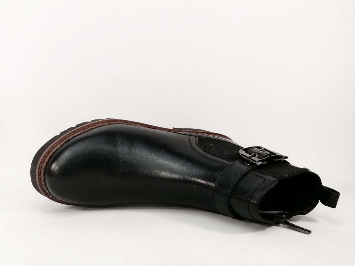 Bottine femme cuir souple noir, tendance et chic à talon, semelle épaisse très confortable en destockage CARMELA 162491 à pas cher.