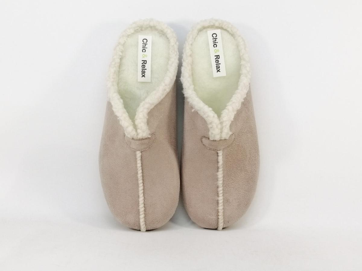 Type de chaussures : Chaussons mule de qualité femme, Pantoufles mule femme chic & relax Rabizo beige, Chaussons confortable chauds femme d'hiver CHIC & RELAX rabizo, Pantoufle mule beige et blanche originale CHIC & RELAX rabizo pour femme, Chausson de qualité femme à pas cher fabriqué en Espagne, Pantoufle mule pour femme à petit prix.