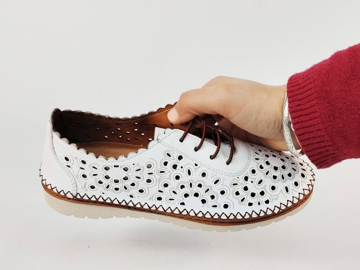 Chaussure blanche femme cuir souple tendance et confortable avec une semelle très souple et anti-dérapante.