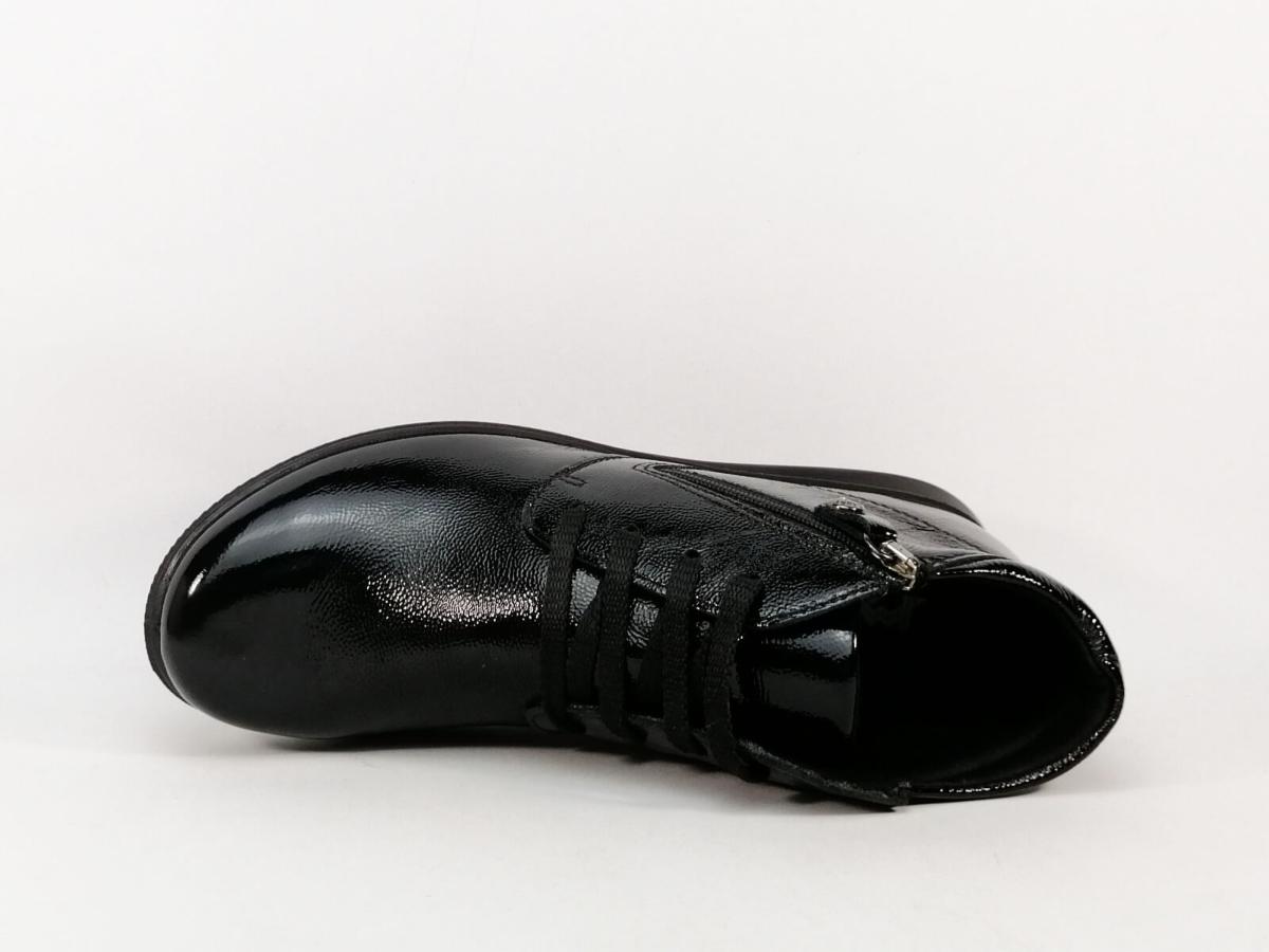 Chaussures montantes femme pieds larges et sensibles en cuir souple noir vernis, grand confort avec zip et lacets à prix cassé en destockage IMAC 455860
