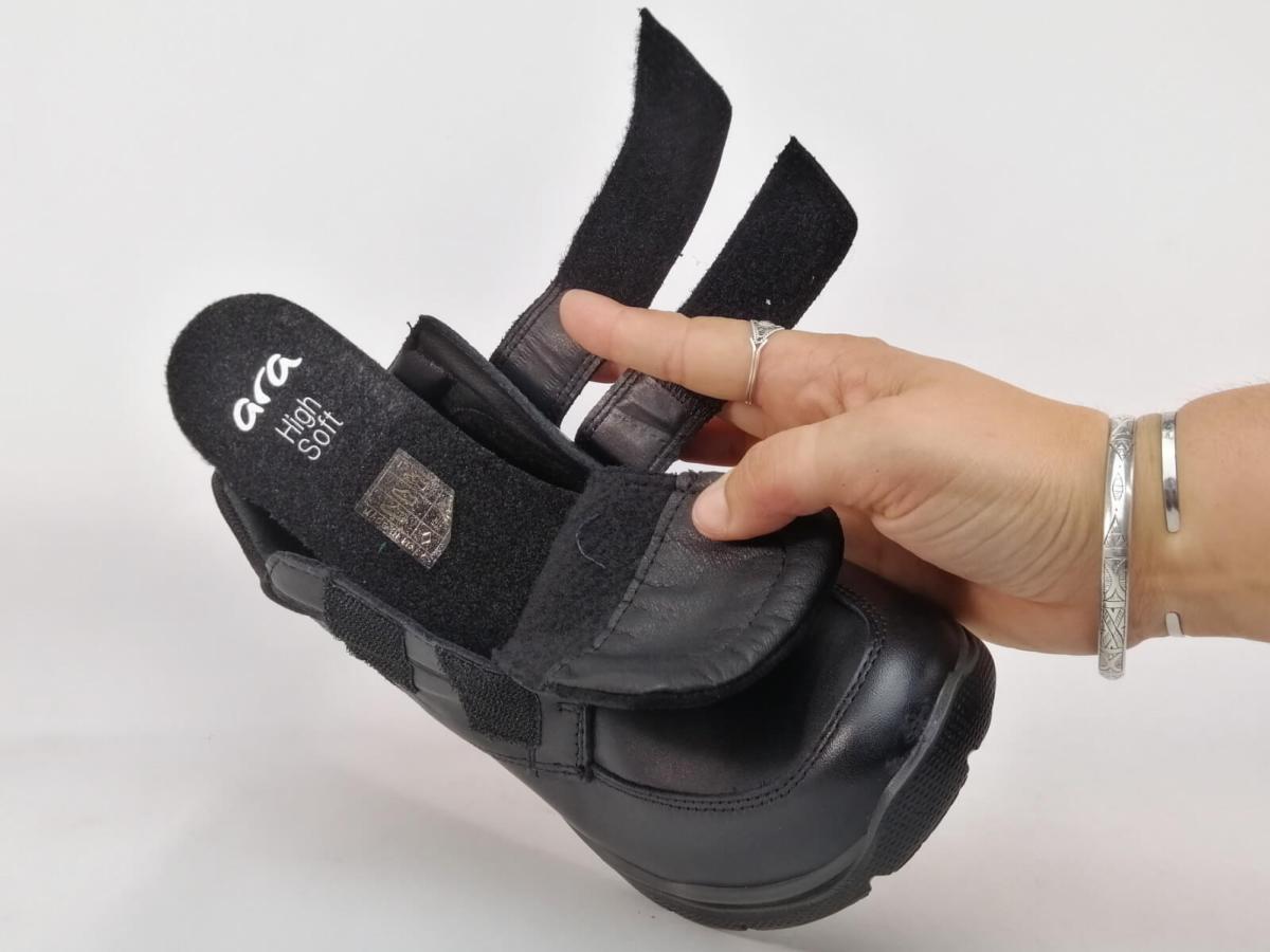 Chaussure homme confortable noire très facile à enfiler IMAC ARA 653905 à double scratch qui offre une grande ouverture de la chaussure.