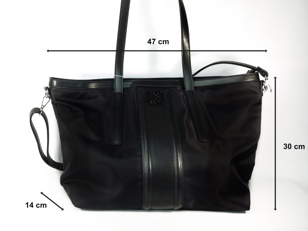 Grand sac cabas noir à bandoulière femme tendance, la bandoulière s'agrandie de 70 cm à 130 cm.