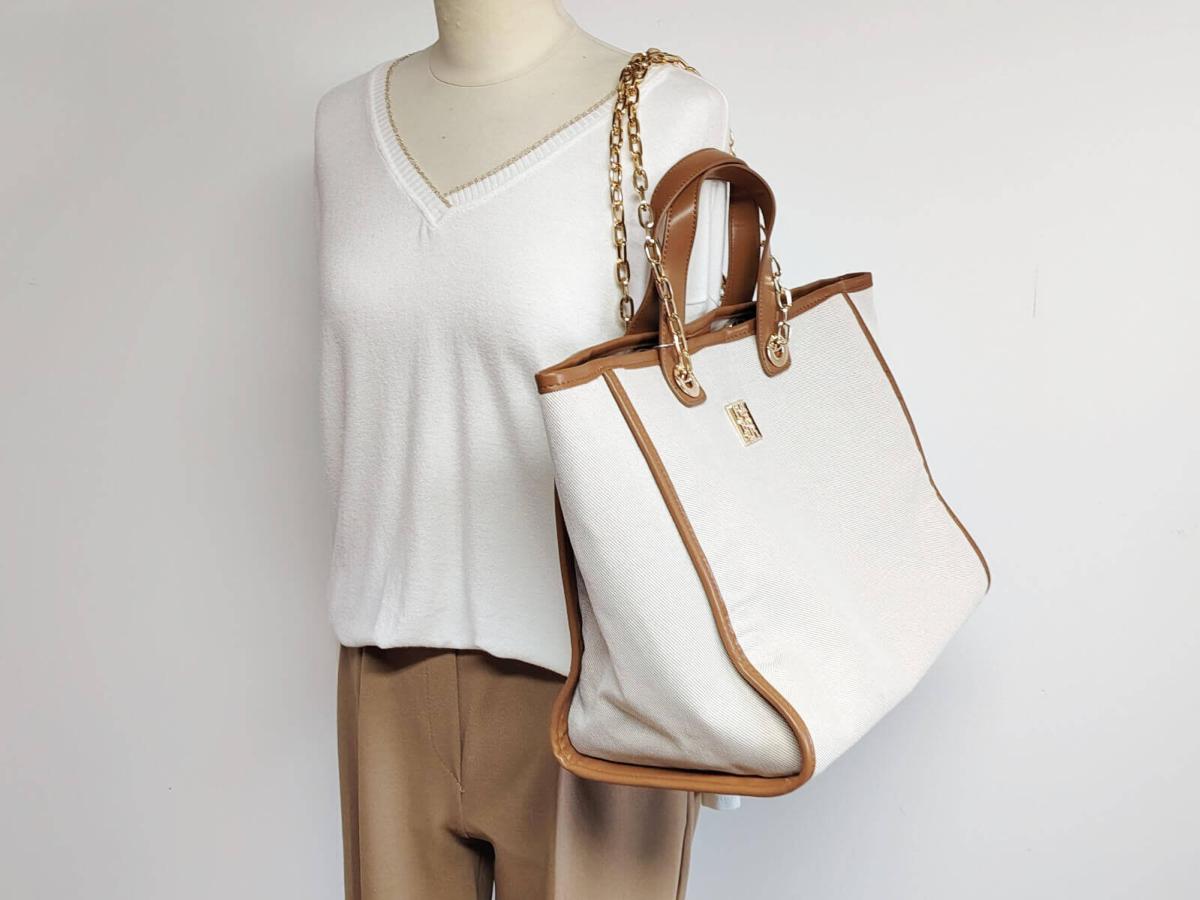 ↓ Plus d'infos sur ce grand sac à main cabas femme anse chaine en destockage REFRESH 183391 beige et camel chic↓