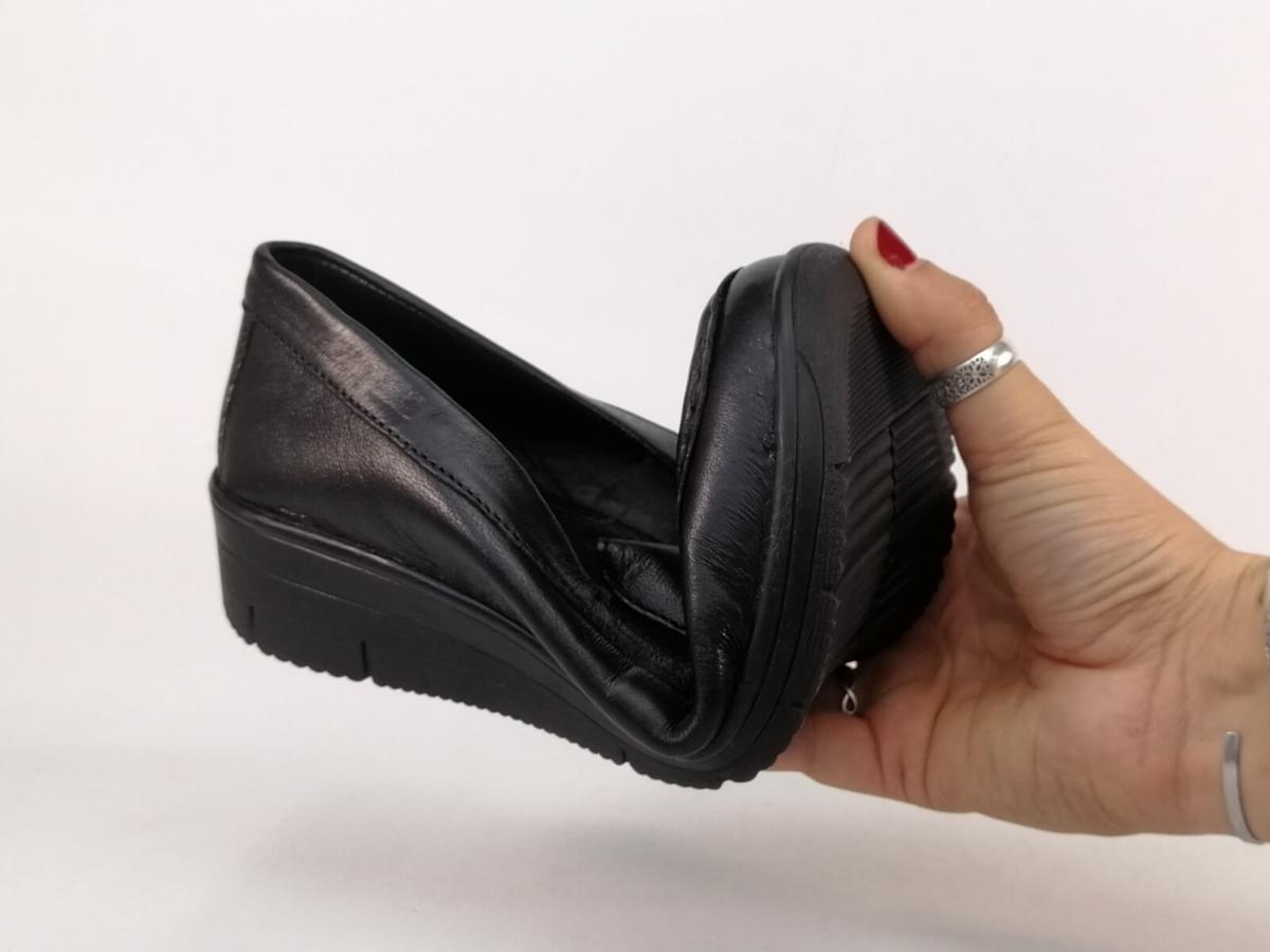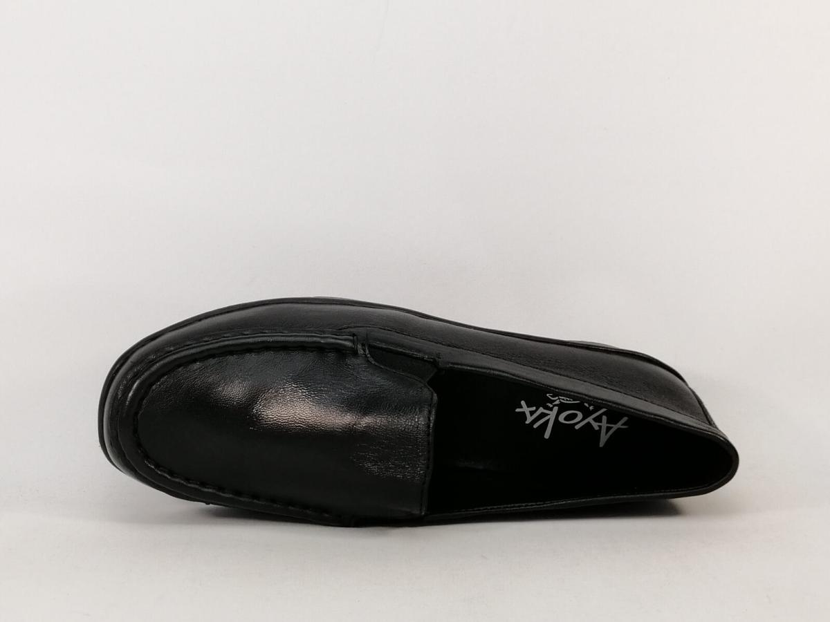 Type de chaussures : Mocassins femme compensés grand confort, Chaussures confort femme pieds sensibles AYOKA dastor en cuir souple noir de qualité, Chaussures femme en cuir grand confort pour pieds larges et sensibles, Mocassins confort femme à enfiler sans lacets en cuir noir souple, Chaussures femme pieds sensibles en cuir avec une semelle confort AYOKA dastor.