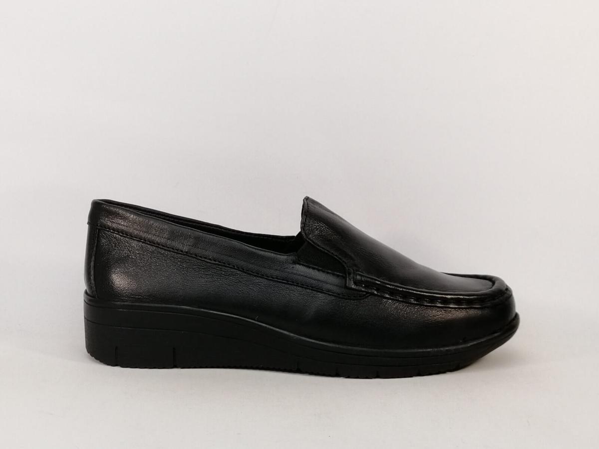 Mocassins femme compensés pieds sensibles grand confort cuir noir AYOKA dastor sans lacets