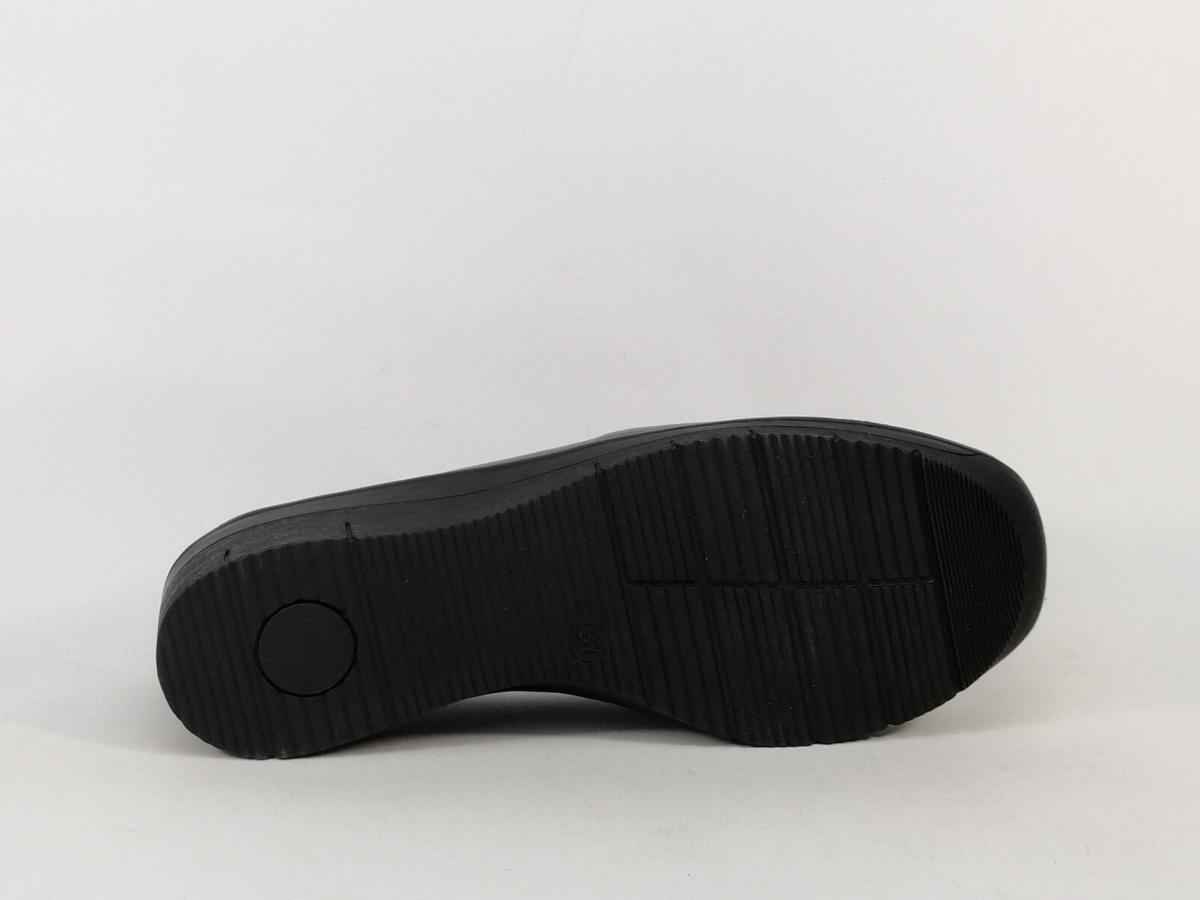 Chaussure femme en cuir souple noir, facile à enfiler, sans lacets avec 2 élastiques d'aisances spéciale pieds sensibles et pieds déformés.