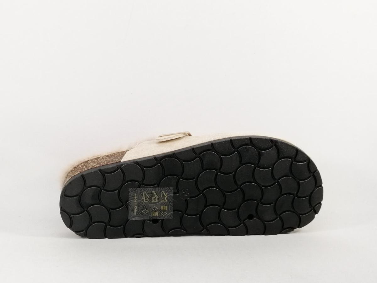 Chausson mule sabot pour femme à pas cher CHIC SHOES R116 beige, réglable avec une bride à boucle sur le dessus du pied.