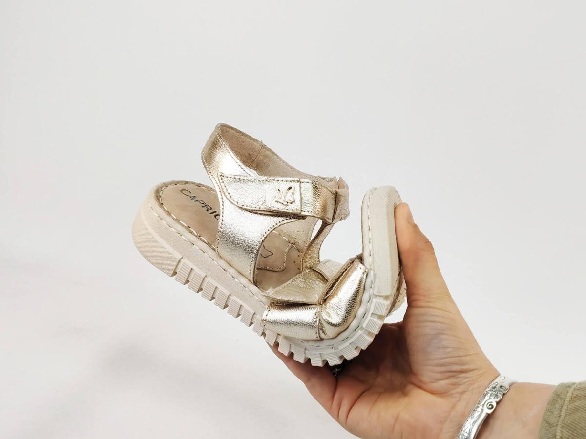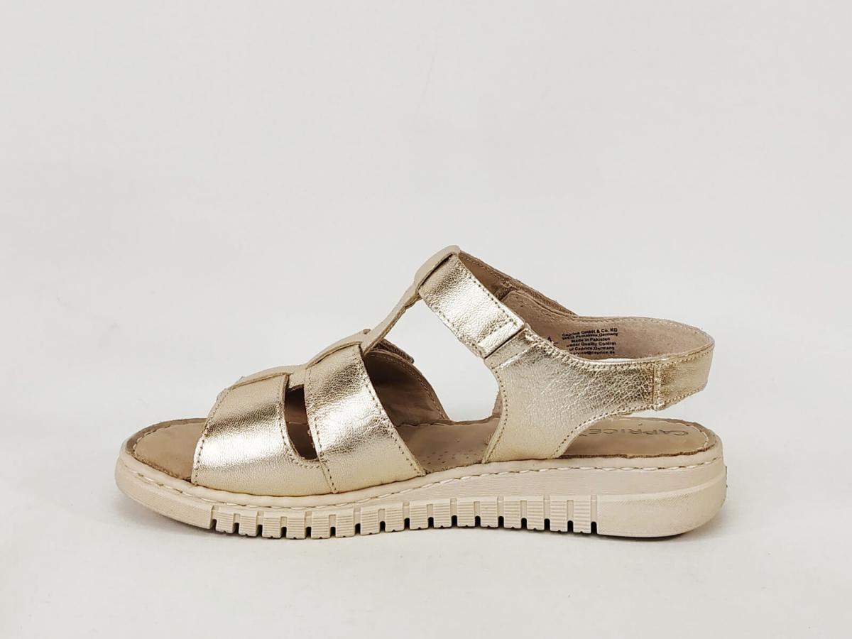 ↓ Plus de détails sur cette sandale femme confortable scratch cuir doré chic largeur G destoclage CAPRICE 28102 ↓