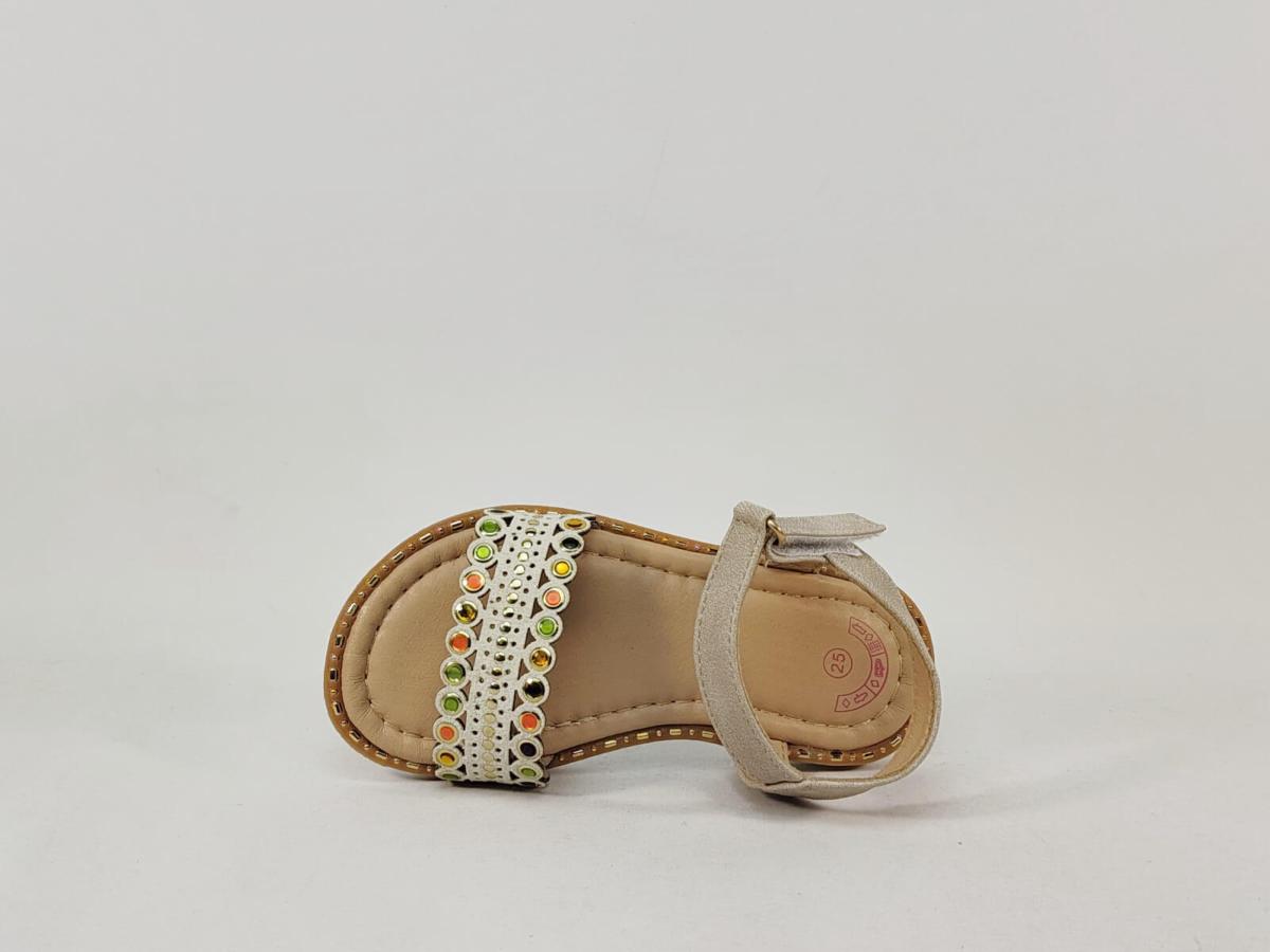 Nu-pied fille bébé beige multi colore tendance légère, semelle souple anti-dérapante du 24 au 29 à pas cher WIPOP Yira avec bride à velcro.